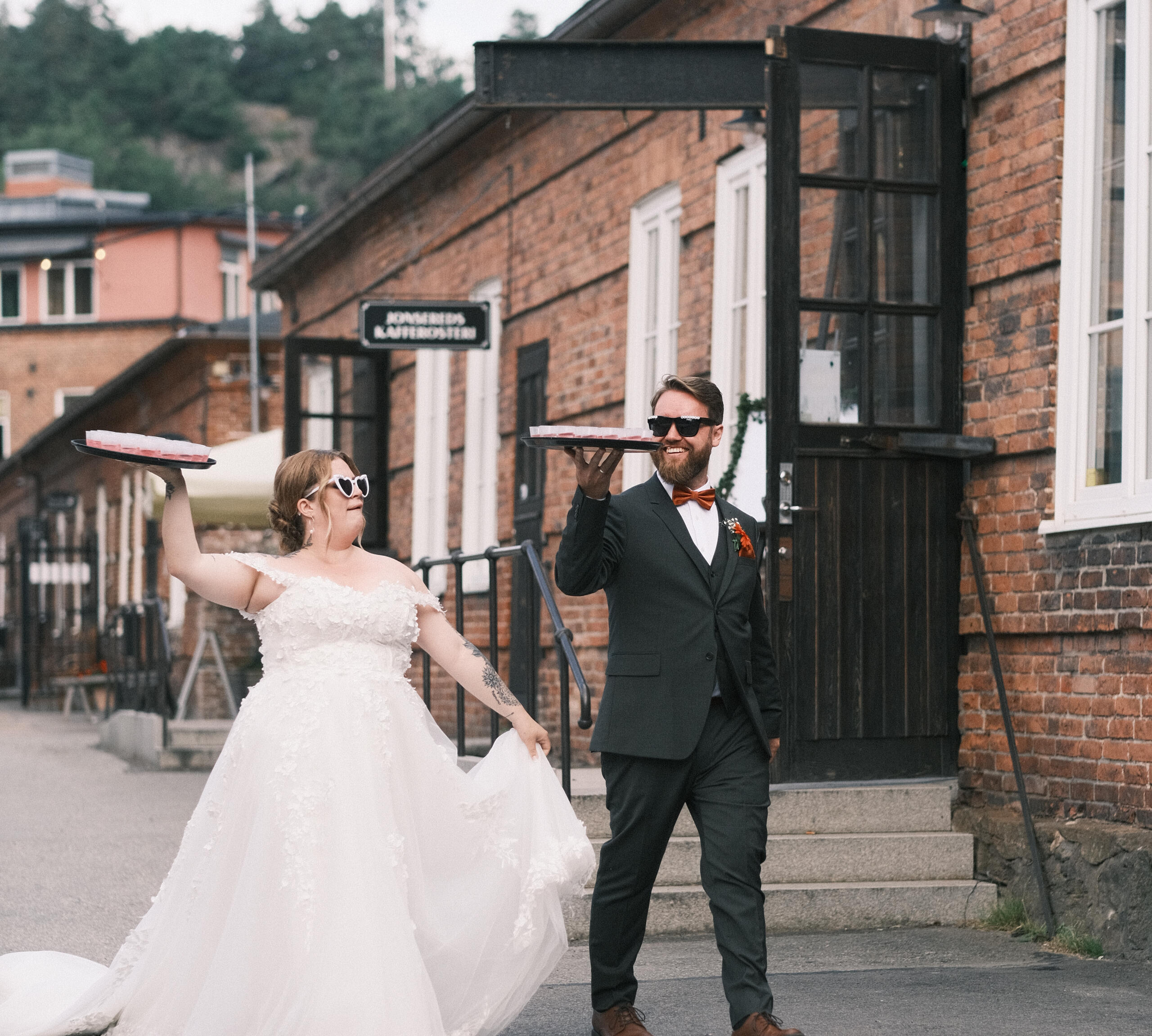 Bröllop med fotografering från förberedelser inför, vigseln, porträttfotografering, mingel och fest på kvällen.